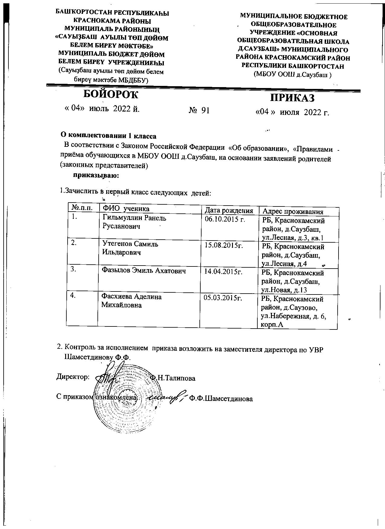 Совет обучающихся МБОУ ООШ д.Саузбаш