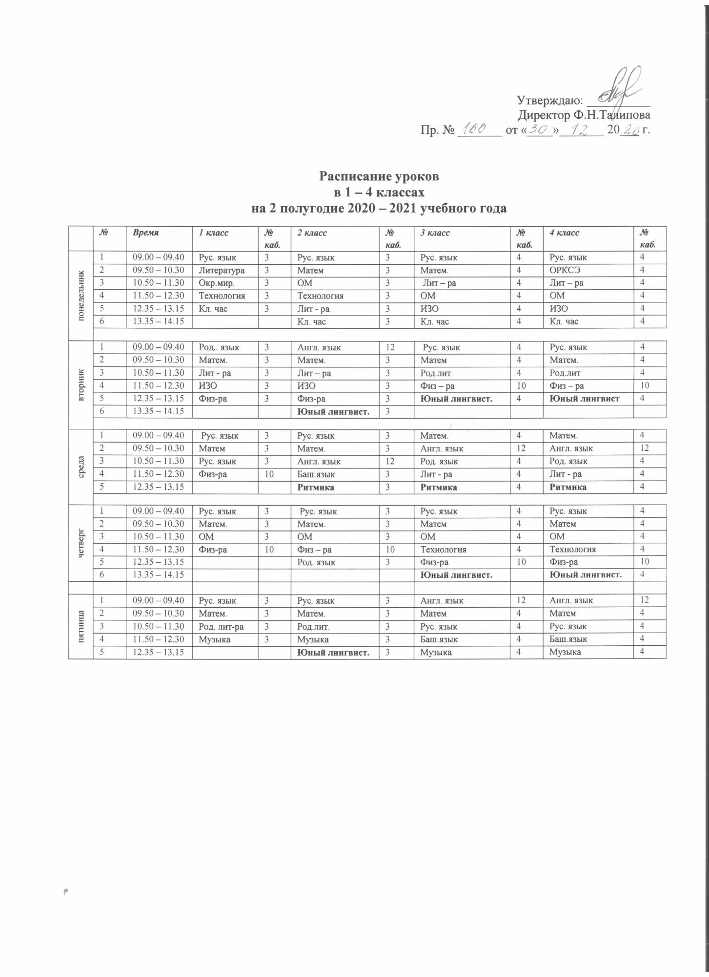 Расписание 1 - 4 классов