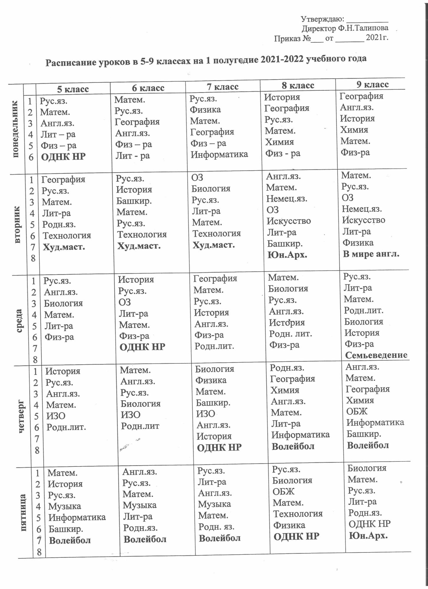 Расписание 5 - 9 классов